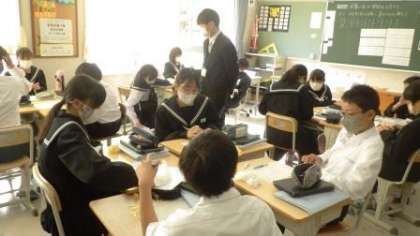 1年2組は、数学科「比例・反比例の利用」の単元で、日常の出来事を班で話し合い、関数の式に表しました。