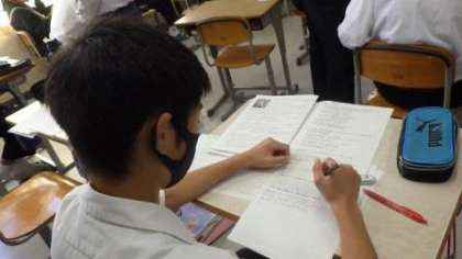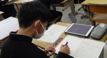 テスト振り返り 公開日 2022/11/21 更新日 2022/11/21 お知らせ 先週末に定期テストが終わり、今週、11月21日(月)からは、各授業でテストの答案の返却をしています。 まず、教科担当が、正答や解説をタブレットや印刷物を使って伝えました。次に、各生徒が、自分の解答と見比べて間違いを直します。そして、テストの取組を振り返って次の課題や目標、今後の取組方を考えていました。生徒個々の学びに生かすことを大切にするようにして努めています。