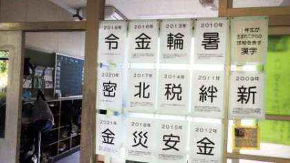 2022年も年もあとわずかとなり、1年を振り返る時期となりました。1年生の廊下には、世相を表す漢字1文字をテーマに、掲示がされています。1年生が生まれてからこれまでの漢字の変遷が紹介されています。それらを参考に、生徒一人一人が、予想した漢字も紹介されています。生徒たちが、その漢字を選んだ理由に、それぞれの思いや願いを感じます。