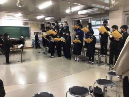 12月22日(木)の5時間目には、2年3組が曲目「手紙」の合唱を発表しました。