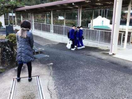 「愛の一声運動」として、校門では、民生児童委員の方が生徒たちに、声を掛けてくださいました。