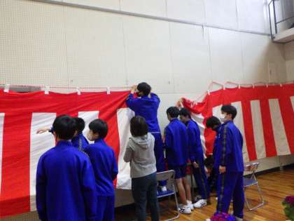 入学式準備 公開日 2023/04/10 更新日 2023/04/10 お知らせ 4月6日木曜日に本校の3年生が入学式に向けての準備を行いました。新しい後輩たちのために、各学級ごとのカラーに合わせて教室の黒板を彩ったり、体育館に紅白幕や赤絨毯をきれいに整えたりする様子は、最高学年の3年生として相応しい姿でした。