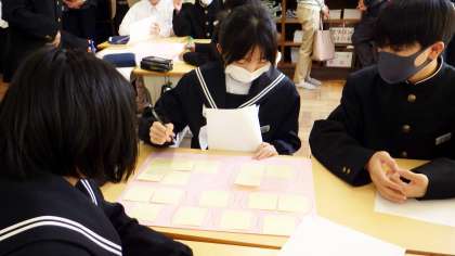 本校では、「未来を切り拓く生徒の育成」をテーマに、それを実現する授業力向上を目指して全教職員で研修を行っています。