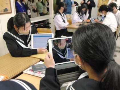 5月2日(火)の授業参観では、ICTを活用し、生徒が主体となって対話を通して、考えを深める授業を目指して取り組んでいる姿をご覧いただきました。
