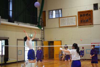 教育実習生が保健体育の研究授業を行いました。種目はバレーボール!3段攻撃がうまくできるように、班で協力してプレーしました。