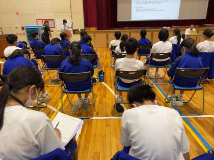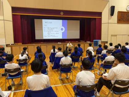 2年生 【マナー講座】を実施しました。 公開日 2023/07/03 更新日 2023/07/03 お知らせ 先週の金曜日、本校の卒業生を講師にお招きし【マナー講座】を実施しました。電話での応対の仕方、丁寧な接客の仕方や名刺の渡し方など、ご自身の経験も踏まえ指導してくださり、とても貴重な時間となりました。 9月には松平地区での職場体験学習を予定しています。今日学んだことを生かし、働くことや将来の生き方について深く考えられる行事にしていきたいです。