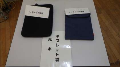 学習用タブレットの破損防止対策として、タブレット袋の見本を昇降口に展示してあります。手にとってみてください。値段によって機能は違いますが、このようなものを準備していただけるように、ご協力をお願いします。