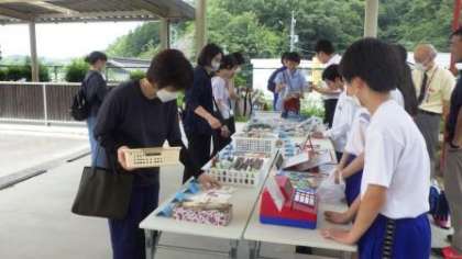 発表会に併せて、7・8組の生徒の作品を展示販売する「花工房」も開店し、学級の生徒の頑張りや取組を紹介し、認め合う機会となりました。