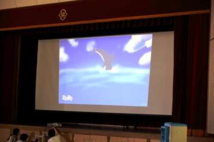 美術部の発表 公開日 2023/07/10 更新日 2023/07/10 お知らせ 7月7日(金)「文化部発表会」の3番目には、美術部が発表しました。 美術部は、アニメーションという新しい分野に挑戦しました。2・3年生が分担して400枚ほどの枚数の原画を制作しました。一人あたり、10枚ほどになるのですが、合わせたら絵の雰囲気が必ずしもみな同じでなく、それぞれの表現の違いもよしとすると、発表前の活動中に話していました。違いを認めて力を合わせて作品を作ることの価値を目に見る形で示してくれました。