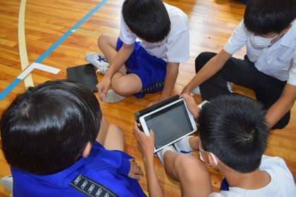 夏休みが明けて暑さがまだまだ厳しい状態ですが、子どもたちは元気よく登校して、笑顔で友達と夏休みの思い出を語り合っていました。学年集会では、職場体験に向けてのアンケートをタブレットで行ったり、夏休み中に活躍した生徒の紹介や部活動の表彰を行ったりしました。