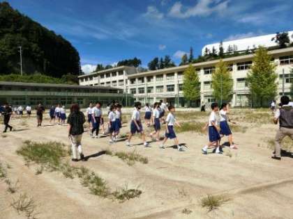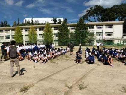 今年度2回目となる今回は、地震が放課の時間帯に起きたという想定で実施しました。生徒たちは、教室以外の場所でも、落ち着いて、身を守る行動ができました。