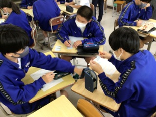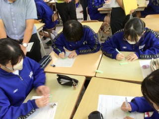 特別活動 公開日 2023/10/03 更新日 2023/10/03 お知らせ 10月3日(火)、3年生の特別活動の授業を行いました。 「君たちはどう生きるか」をテーマに、自分自身の長所や特性を理解し、職業選択や今後の生き方について考えました。まず、自分と仲間の長所や、そこからイメージする職業を考え、伝え合いました。そして、仕事を含む生き方の本質をキーワードで考えました。 市の研修の一環として、学年主任が授業者となり、他校の先生方も参観されました。