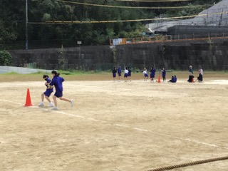体育祭の練習を、各学級の体育の授業で行っています。 10月13日(金)は、各学年が、学年全体で練習を行いました。