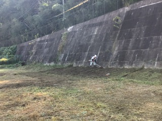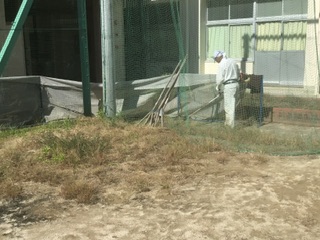 10月17日(火)には、2人の校内整備員さんが、運動場の草を刈りました。体育祭で保護者の方の参観場所となる、技術棟前等の運動場の隅まで除草しました。