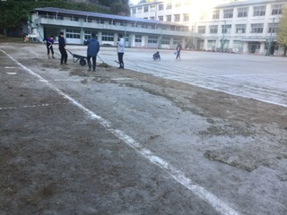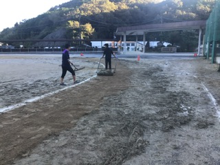 グランドに砂を入れて、整備しています。もしばらくお待ちください。