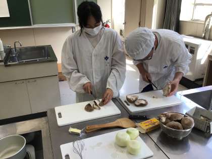 松中産しいたけポタージュ作り 公開日 2023/10/25 更新日 2023/10/25 お知らせ 特色ある学校づくりの取り組みで栽培した、松平地区特産のしいたけを使って「しいたけポタージュ」をつくりました。しいたけを細かく切って、玉ねぎ、ジャガイモと一緒にミキサーでペースト状にしたものに、牛乳、コンソメスープのもとを入れ、ひと煮立ちで完成。みんな、「おいしい!」の声。先生たちにも試食してもらいました。
