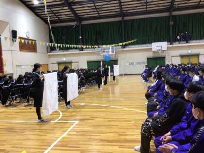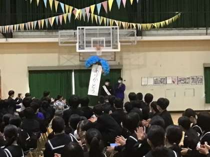 3年生を送る会 公開日 2024/03/01 更新日 2024/03/01 お知らせ 3月1日(金)、3年生を送る会を行いました。 会場の体育館は3年生一人一人へのメッセージなどで装飾され、「よく見れば、〜思い出はここに〜」をテーマに、1・2年生が企画した劇や動画を通して楽しみました。