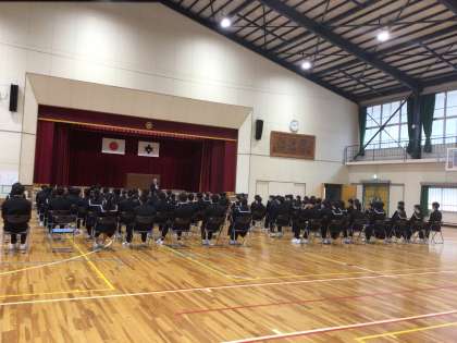 明日は卒業式 公開日 2024/03/05 更新日 2024/03/05 お知らせ 3月5日(火)、明日の卒業式に向けて3年生が体育館での最後の練習をしました。 3年生の学年主任が、生徒たちに語る場面もありました。