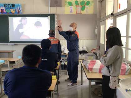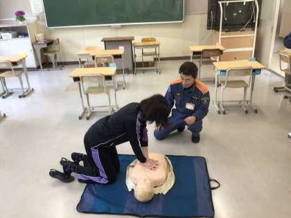 シミュレーション訓練 公開日 2024/04/11 更新日 2024/04/11 お知らせ 4月11日(木)、生徒下校後、命を守るためのシミュレーション訓練を行いました。 消防署員の方を講師にお迎えし、緊急時の対応について連絡体制を確認し、全教職員がグループに分かれて研修しました。