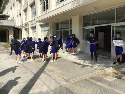 生徒会執行部の企画で、挨拶運動を行なっています。