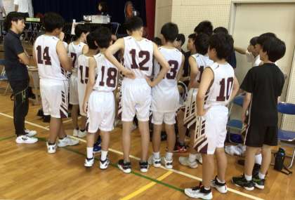 写真は高橋中学校会場のバスケットボール部の様子です。