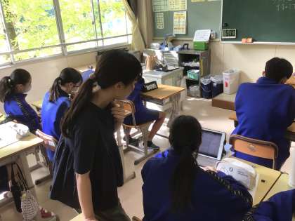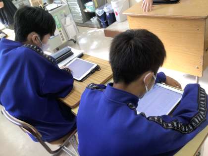9月10日(火)朝の会で、3年生の生徒がタブレットで、進路担当者から配信された秋の高校見学会や体験入学一覧表を閲覧していました。進路選択の参考になる情報を随時伝えています。積極的に活用してください。