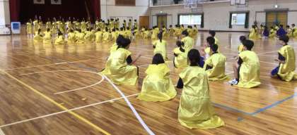 松中ソーラン練習 公開日 2024/10/16 更新日 2024/10/16 お知らせ 体育祭特別日課で、授業の最後に組団による松中ソーランの練習を継続して行っています。日々上達し、演技もずいぶん仕上がってきました。 10月16日(水)の6時間目は、はっぴを着て練習をしていました。3年生がリードし、生き生きと踊る姿が見られました。