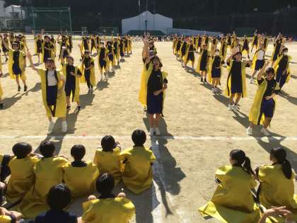 今年度の体育祭では、生徒たちがより主体的に表現活動や創作活動に取り組めるようにしたいと考えいます。そこで、ソーランでは、従来の踊りの中に、歌謡曲やアニメの曲などのオリジナルの選曲で各学年がメインで踊る場面が新しく設けられました。創意工夫あるれる楽しい演出が織り交ぜられた踊りが運動場に繰り広げられました。また、互いの踊りに手拍子や大きな拍手が送られていました。