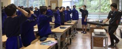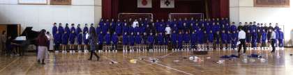 まず、全校で校歌を斉唱し、1年、2年、3年の順に学年で合唱します。