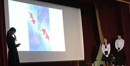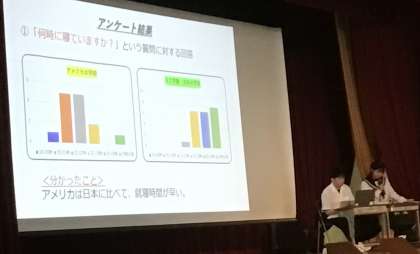 まず、アメリカやイギリスに海外派遣された生徒が発表しました。
