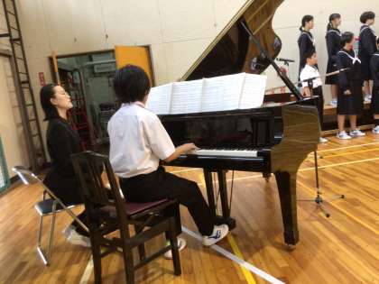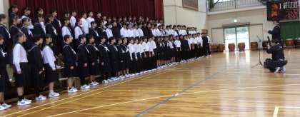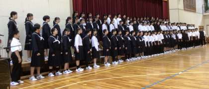 1年生は、「地球星歌(せいか) 笑顔のために」を歌いました。