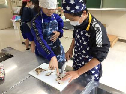 しいたけおやきつくり1 公開日 2024/11/12 更新日 2024/11/12 特色ある学校づくり推進事業 特色ある学校づくり推進事業で栽培した、松平地区特産のしいたけを使って「しいたけおやき」を作りました。調理室からとてもいいにおいが学校中に広がっていました。食べた生徒が、「とてもおいしかった」という感想を述べていました。