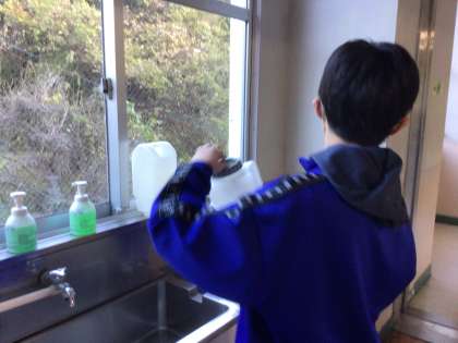 また、教室では、保健委員が加湿器を設置し、毎日水を替えて活用しています。