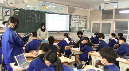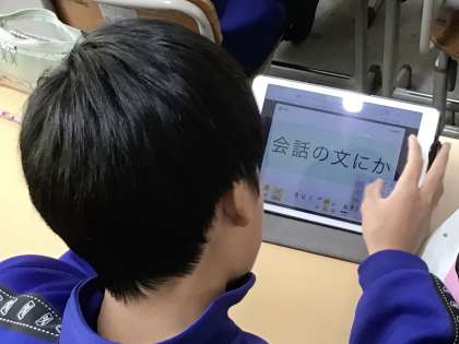 学習では、各場面に合ったタブレットの多様な機能を活用して、各自の文章の作成やグループワークを行っていました。