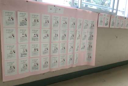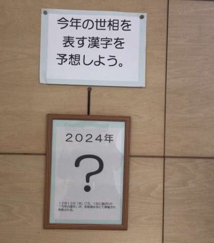 今年の漢字 公開日 2024/12/13 更新日 2024/12/13 お知らせ 12月12日(木)、今年の漢字が発表されました。 本校でも3年生の社会科の授業で、事前に予想しました。漢字とその理由を書いた掲示を廊下に紹介しています。 実際に1位の「金」や2位の「災」、3位の「翔」を選んだ生徒もいました。 どの生徒の意見も世の中の見方が伝わり、興味深いものでした。