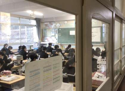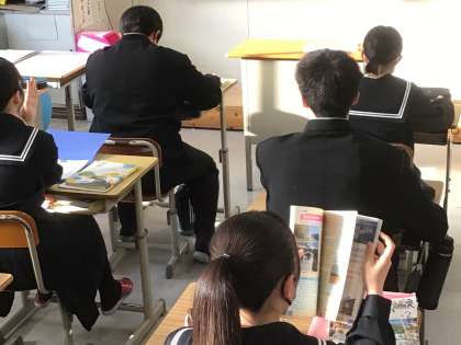 朝活動の時間には、生徒たちが集中して教科書を見直す姿が見られました。