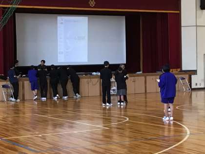 委員会活動・リーダー会2 公開日 2025/04/21 更新日 2025/04/21 お知らせ 1年生のリーダー会では、学年をさらによくするために何に重点をおいて取り組むとよいか、とても前向きで建設的な考えが出ていました。体育館では、何かのイベント(?)のリハーサルを行っていました。
