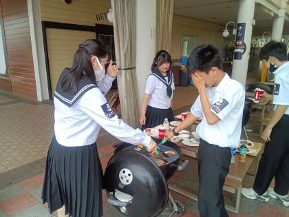 風と煙に苦戦しながらも焼いています!