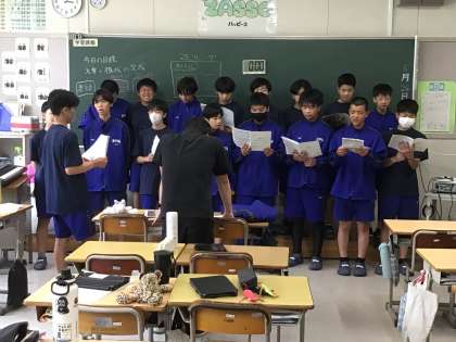 合唱コンクールに向けて各学級での練習が本格化してきました。全員で発声練習をしたりパートごとに練習したり、それぞれの目標に合わせて練習をしています。楽しんで練習している姿がいんしょうてきです。