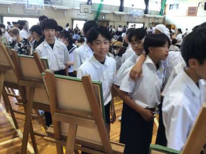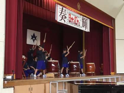 生徒会が中心となって文化発表会が開かれました。合唱コンクール、吹奏楽部の演奏、わ太鼓の披露、そして美術部の作品紹介と展示を行いました。