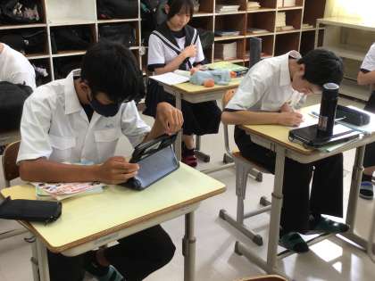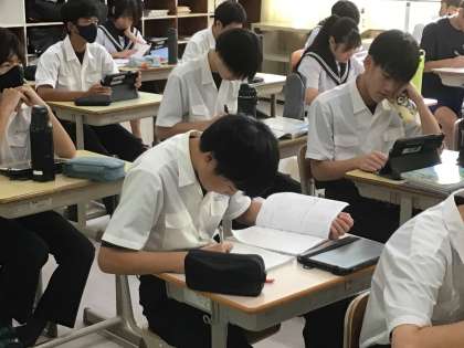 夢の実現に向けて 公開日 2025/09/02 更新日 2025/09/02 お知らせ 本日より3日間、前期の期末テストです。朝、3年生の教室をのぞくとテスト勉強に励む姿が見られました。進路希望調査の用紙を担任の先生に提出し、相談する姿もありました。夢の実現に向けて一歩、また一歩と着実に歩みを進めています。