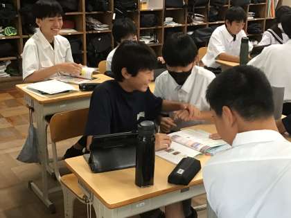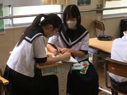 今日は前期期末テストの最終日。1年生の教室をのぞいてみると、2、3年生同じく一生懸命にテスト勉強をしていました。中には、先生に質問したり仲間と教え合ったりと学びを深めようとする姿が見られました。今後の授業でも学び合う姿を大切にしていきたいと思います。