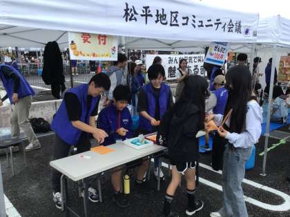 交流館祭りボランティアのようす 公開日 2025/10/08 更新日 2025/10/08 お知らせ 10月5日に交流館祭が開催され、60人余りの生徒がボランティアとして参加しました。子どもゲームや車いす体験、ワークショップなどさまざまなブースの中で活躍をしていました。