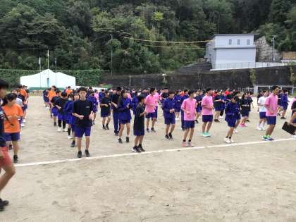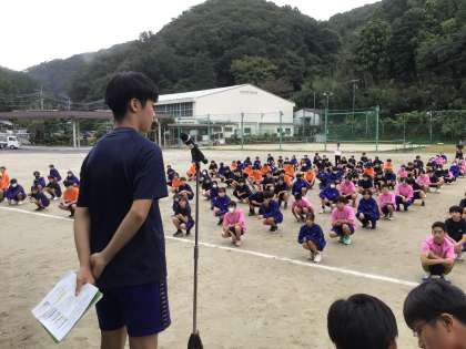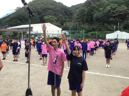 雨が心配されましたが、予定どおり体育祭の予行の決行です。本番どおりの流れで練習を行っています。