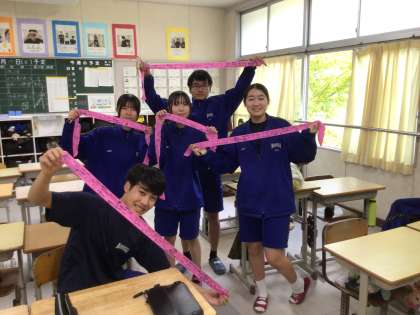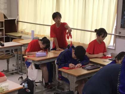 体育祭で使うはちまきに組団の仲間からメッセージを書いてもらっていました。それぞれの思いや声援を胸に明日は頑張ってくれると思います。