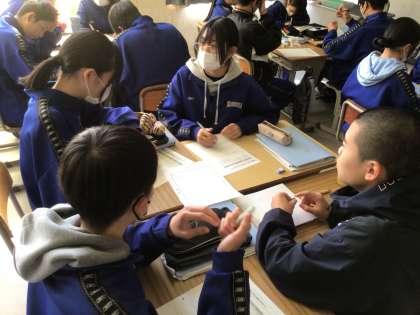 11月26日と27日に数学の授業研究を行いました。一次関数が身近に感じられるように、生活場面を例に考える授業でした。各カラオケ店の料金プランを比較して自分に合ったお店を選択するために、生徒たちはグラフや式を用いて真剣に考えていました。