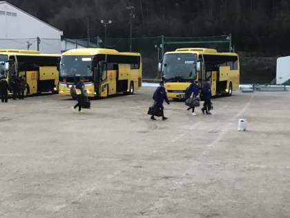 先ほど、健康観察と出発式を終え、松平中学校を出発しました。