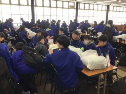 スキーの班ごとに集まり、ウエアなどの確認をし、昼食をとります。