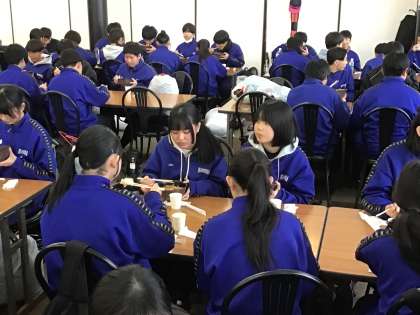 昼食の牛丼をモリモリ食べています。 大盛りでもペロリと食べてしまいました。