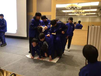 学年企画の様子。どのようなゲームか2年生に聞いてみてください。